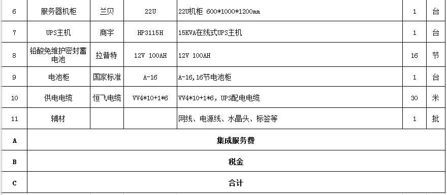 4、為保障服務(wù)器設(shè)備在斷電時不丟失業(yè)務(wù)數(shù)據(jù),需更換一套UPS設(shè)備,盡量延長服務(wù)器的待機時間。(詳細(xì)清單附后)