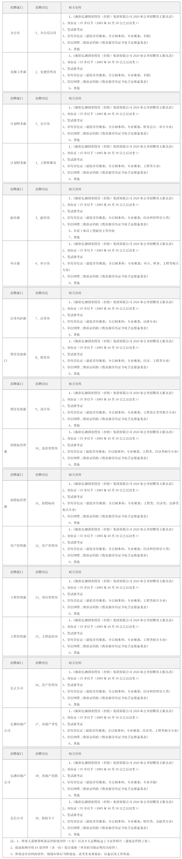 衡陽弘湘國有投資(控股)集團有限公司2020年公開招聘員工資格審查及面試公告